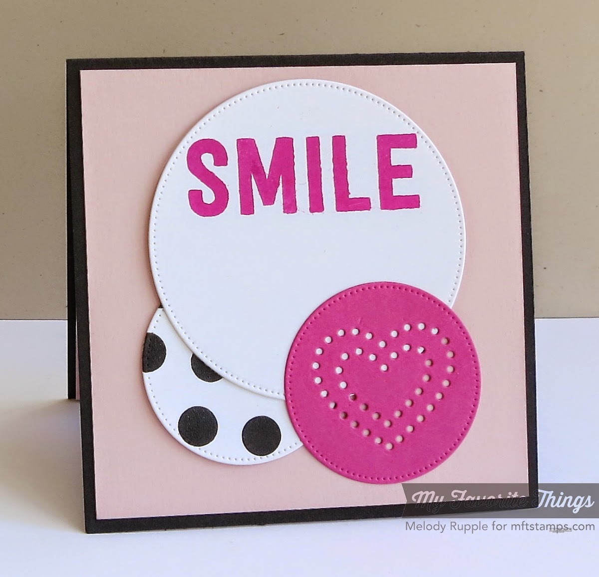 Today I have a card using the new Smile Stamp Set, the Peek-a-Boo Heart Frames Die-namics, and the Large Polka Dots Stencil.