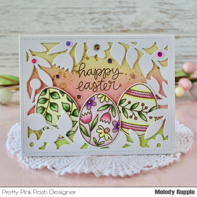 ReplyDeleteMelody, your card choices are always so beautiful and it really shows off the gorgeousness of the new PPP images especially those gorgeous Easter eggs!! Gorgeous way you used the Easter Eggs, and Spring frame turned shaker with so many sparkling jewels and confetti mix!