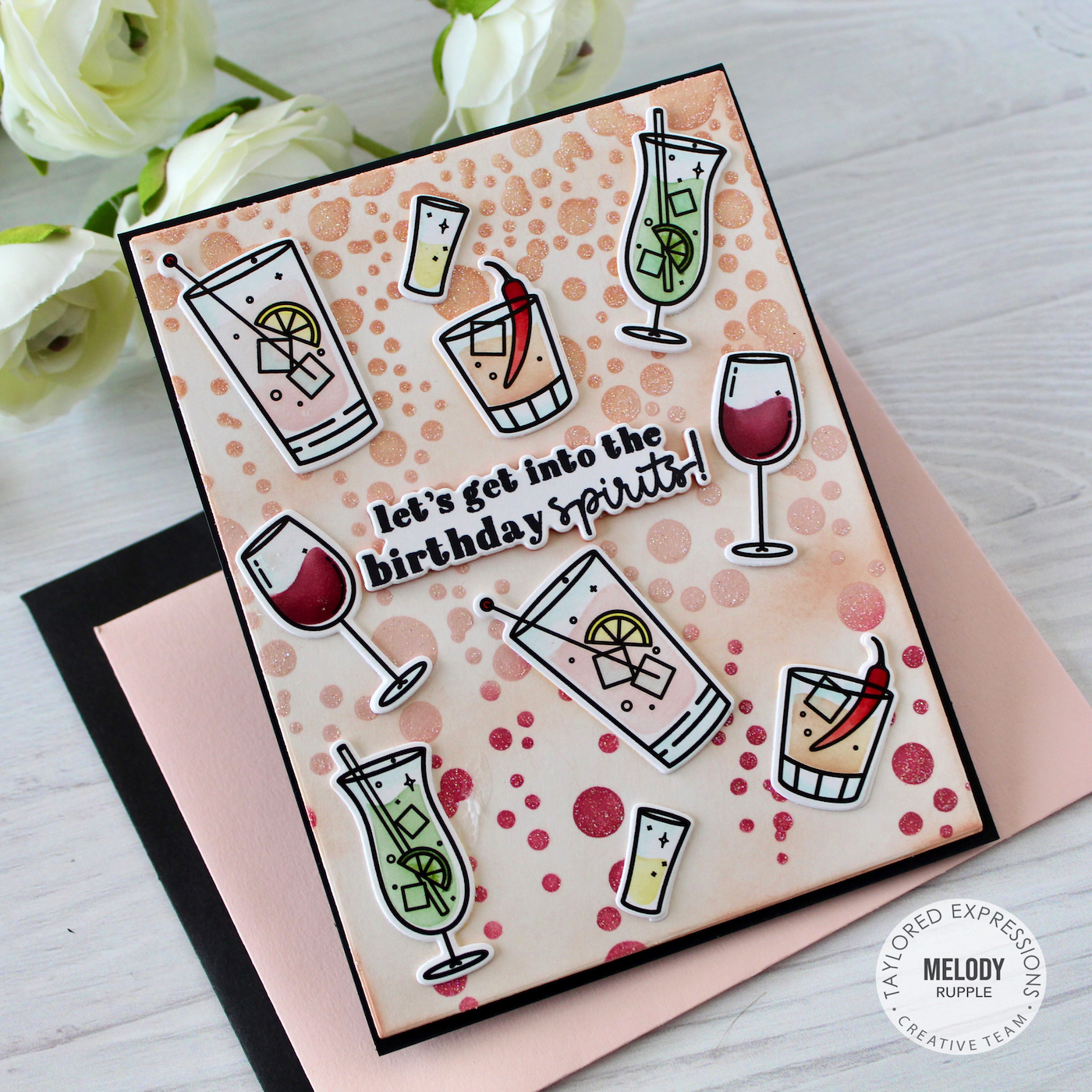 My next card is created with the 5 O'Clock Somewhere Stamp and Stencil Combo, the 5 O'Clock Somewhere Dies, and the Worth A Shot Stamp Set and coordinating dies. So fun!