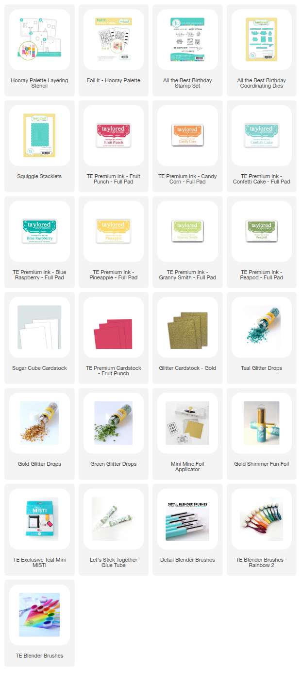 My second card used the Foil It - Hooray and the Hooray Palette Layering Stencil. On this card I used Fruit Punch, Kiwi, Pineapple, Candy Corn, Confetti Cake, and Blue Raspberry Inks.