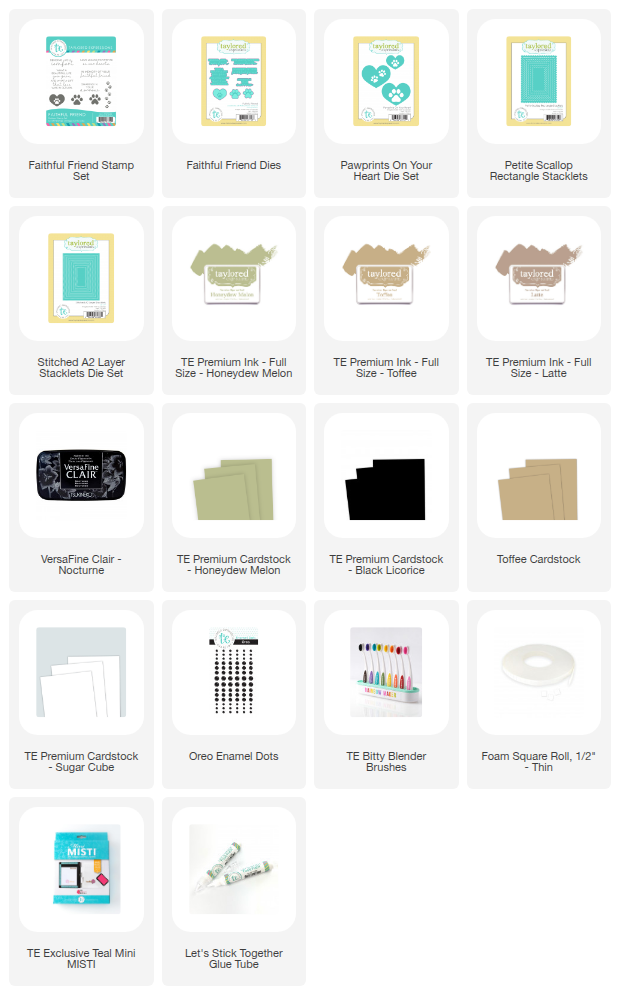 I stamped the paw prints from the Faithful Friend Stamp Set with VersaFine Clair - Nocturne Ink on Toffee Cardstock and die cut with the coordinating dies. I added Oreo Enamel Dots to the paw prints. The hearts are die cut with the Pawprints on Your Heart Dies.